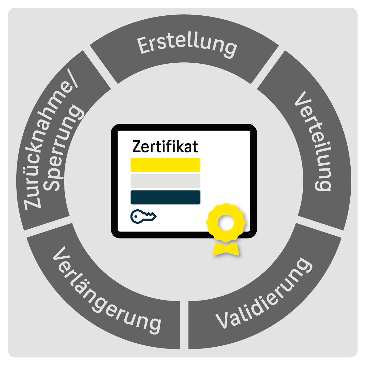 Ein Zertifikat besitzt einen Lebenszyklus. Es durchläuft fünf Phasen: